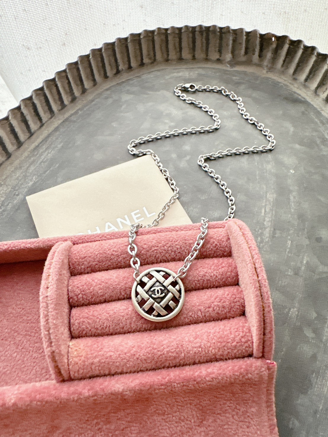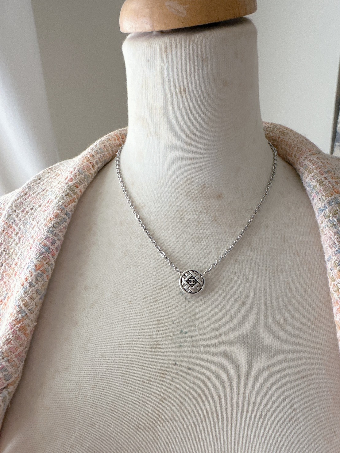 仿舊銀鏤空CC LOGO鈕扣項鍊$3280